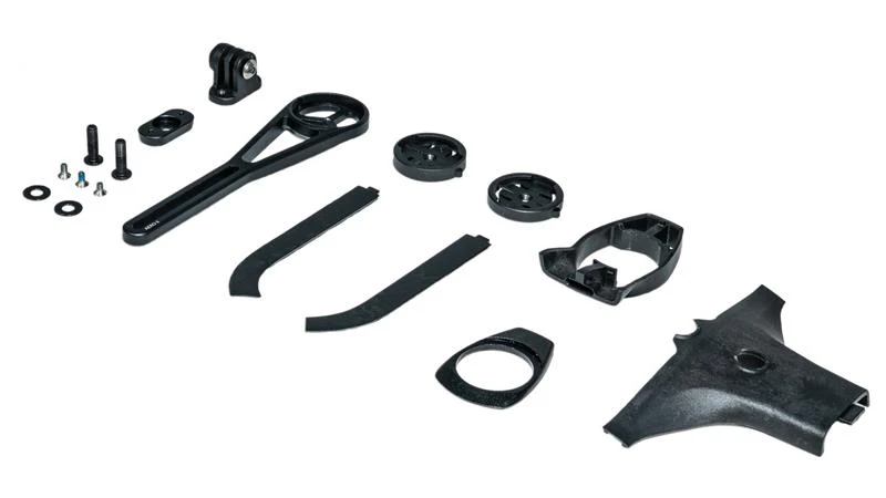 Additionally, the cockpit includes an integrated alloy mount with interchangeable adapters for Garmin and Wahoo cycling computers. This adjustable mount ensures a flush fit, keeping your setup clean. For added versatility, there’s a GoPro mount interface for attaching lights, cameras, or other accessories.