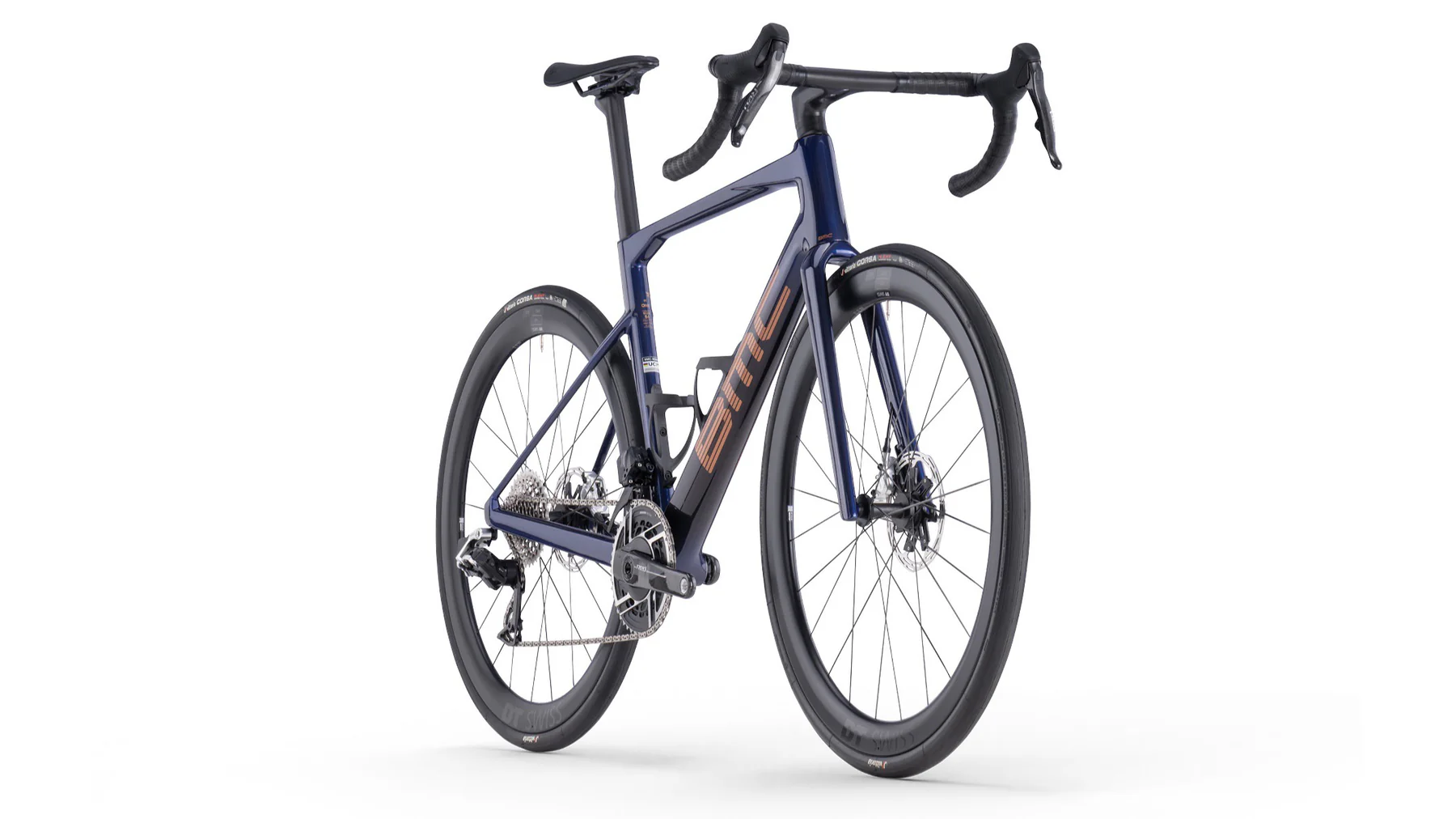 Braking duties are handled by hydraulic disc brakes, providing confident stopping power in all conditions—wet, dry, or dusty. The DT Swiss ERC carbon wheels are another highlight, known for their aerodynamic profile and tubeless-ready design. These wheels roll smoothly on Vittoria Corsa tires, which offer excellent grip and low rolling resistance. The BMC ICS Carbon Evo cockpit adds to the control, with its ergonomic shape and integrated computer mount for a clutter-free handlebar setup.