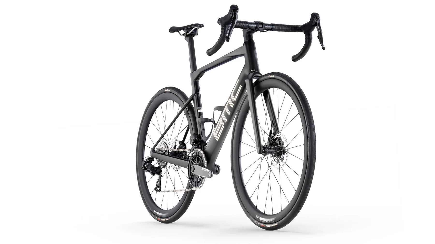 These components ensure the Roadmachine 01 THREE performs reliably across various conditions. The carbon wheels provide excellent stiffness and low rotational weight, enhancing acceleration and climbing efficiency.